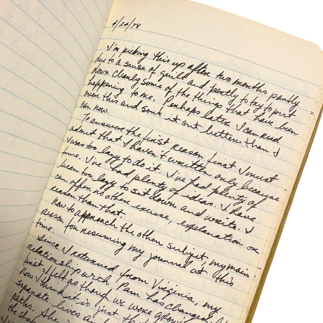 “I bought this book today in another attempt to keep a journal… Today was pay day and since my rent is paid I decided to treat myself to some new books.” [Oct. 19, 1977].